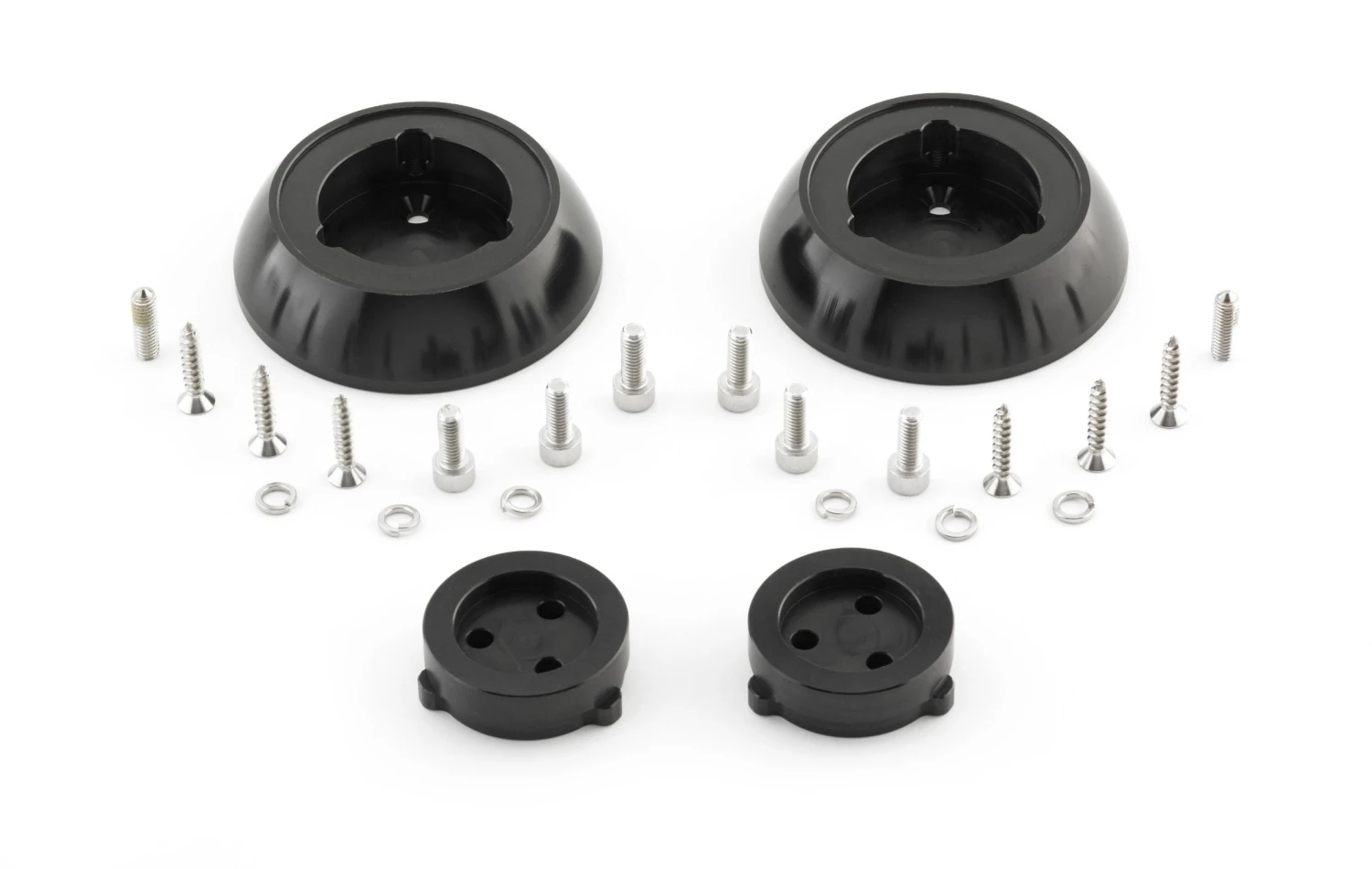 Designed to attach VeX™ Enclosed Speaker Systems to flat surfaces, these low-profile mounting fixtures are precision-machined from marine-grade aluminum to create rock-solid attachment points. A swivel-mounting base is included with each fixture for 360 degrees of total rotation, allowing precise aiming of each VeX™ pod for optimum sound. Each fixture features a tough, black anodized finish that’s UV/corrosion-resistant and includes stainless-steel hardware for years of durability in all outdoor environments. Each mounting fixture set is designed to mount two VeX™ Pods.