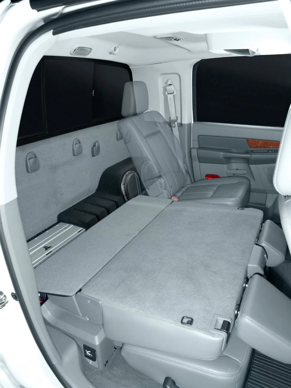 The Stealthbox® team’s solution for the Mega Cab is a compact, sealed enclosure design with two of our premium 10W6v3 Subwoofers. This setup delivers world-class sub-bass fidelity, outstanding power handling and impressive output capability. And, yes… the rear seats still recline and you have plenty of space next to the Stealthbox® for your amplifier(s).