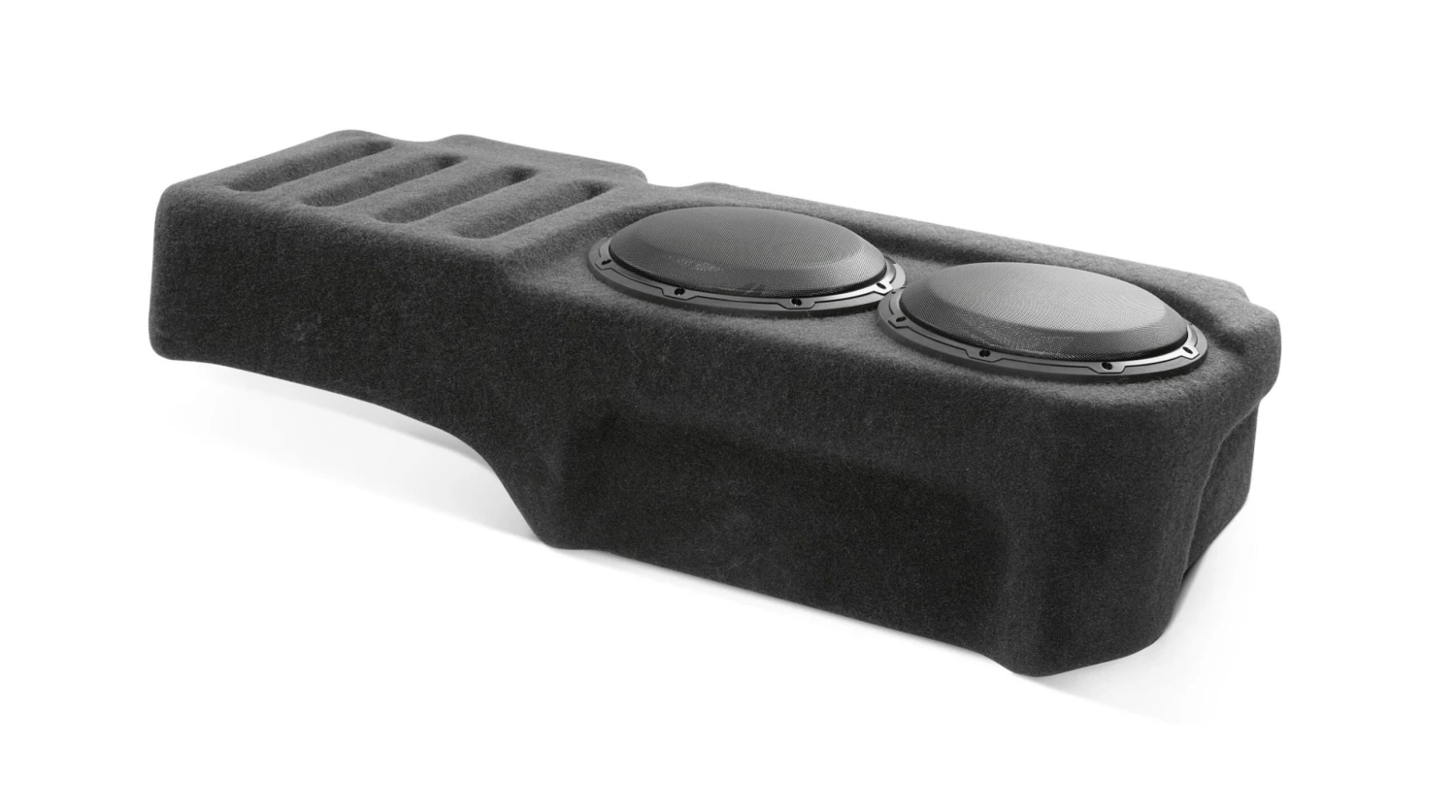 This rock-solid, 100% fiberglass Stealthbox® features twin 10-inch drivers in a sealed enclosure designed to install easily below the rear driver-side seat, preserving your cab space and functionality. Its design also keeps it out of sight of prying eyes and blends seamlessly with your truck’s interior design.